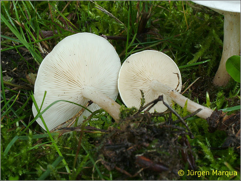 C. phyllophila fällt hier weg, wie Ingo schon schrieb. Das ist eine größere Art mit deutlich rosalichem Sporenpulver. C. rizii-josephii ist das auch nicht, den habe ich einmal auf im Wald ausgebrachtem Kompost gefunden (ist wohl nitrophil), und wenn man den riecht, vergisst man das nicht wieder, außerdem wächst er büschelig mit flatterigen Hüten und exzentrischen Stielen und ist nie so weiß im Hut (der fleischfarbene Grund ist deutlich zu sehen). Also hier kommt für mich eigentlich nur C. rivulosa in Frage (oder was sehr nah verwandtes, noch unbeschriebenes, was man sequenzieren sollte;-).