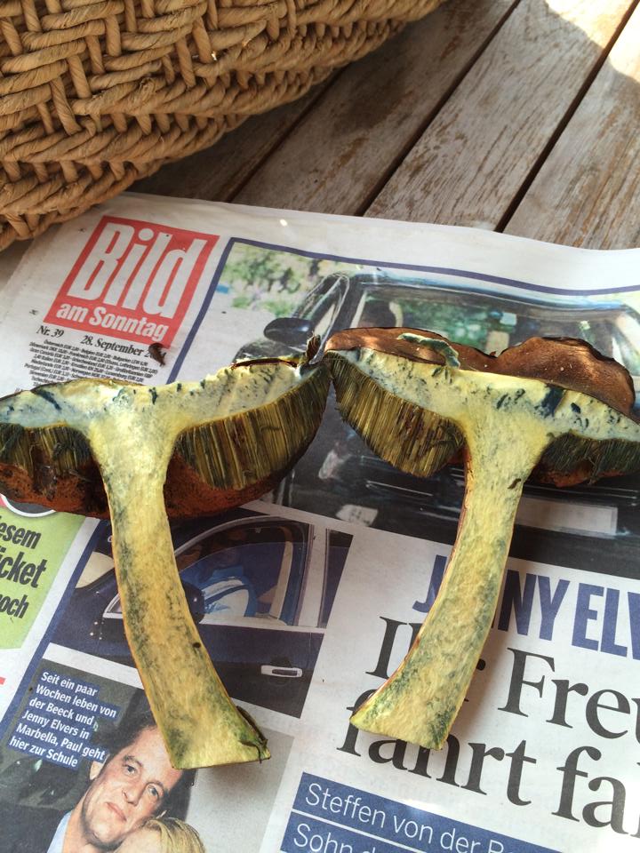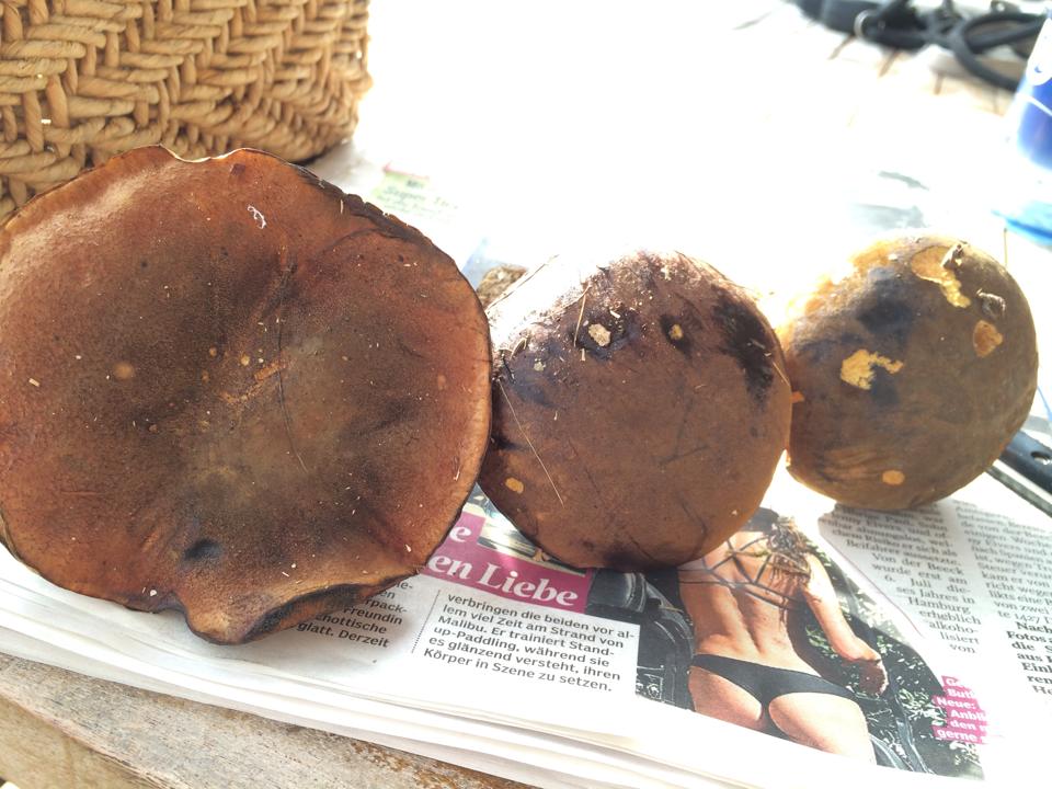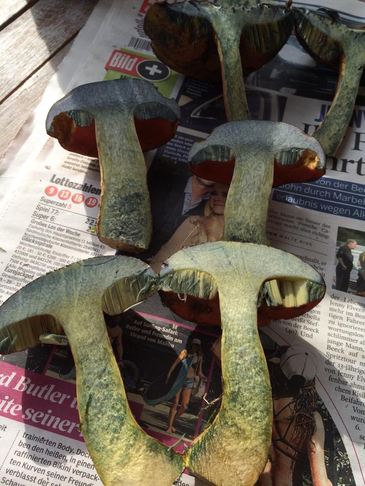 Also bei dem Pilz mit dem schwarzen Slip tue ich mich etwas schwer, das andere sollten Flockenstielige Hexenröhrlinge sein....