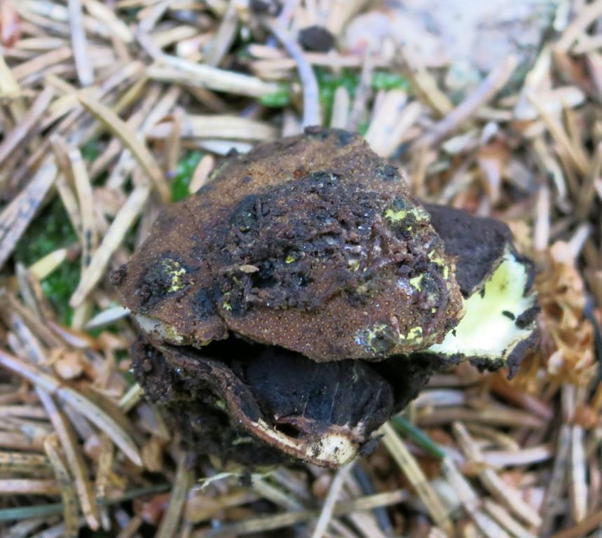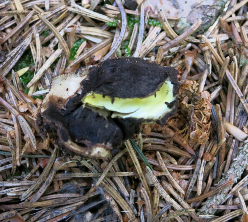 • An Hirschtrüffeln gibt es vorschriftsmäßig keine leuchtend gelben Farben. Das Gelb könnte vom Myzel der Kernkeule stammen, die hat ja selber gelbes Myzel.