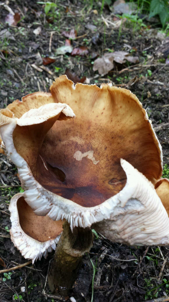 2. Am Wegesrand, fester Pilz mit viel Hutfleisch, geruchsmäßig auch hier keine Auffälligkeiten. Könnte der Pilz in Richtung Fälbling gehen.