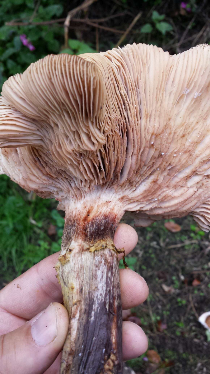 2. Am Wegesrand, fester Pilz mit viel Hutfleisch, geruchsmäßig auch hier keine Auffälligkeiten. Könnte der Pilz in Richtung Fälbling gehen.