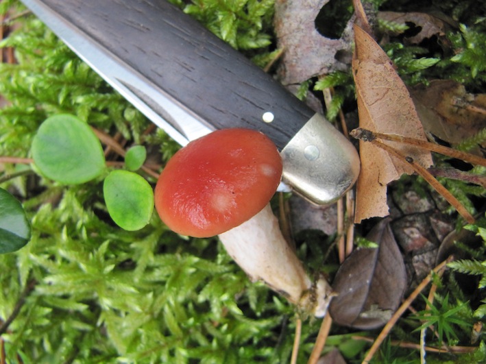 Stand ganz alleine, saurer Mischwald im Moos. Unterseits ein Velum. Kein besondrer Geruch.