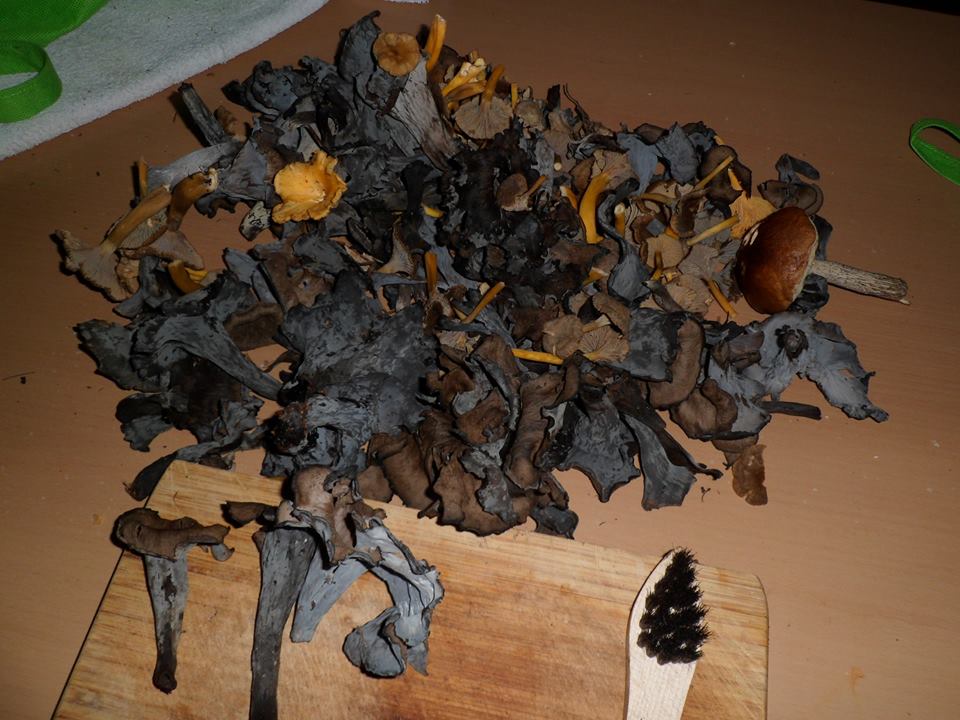 Wir entschlossen uns dann, ein paar Meter den Berg runter zu fahren und gingen kurz vor Spiegelberg nochmal eine Stunde. Es gab einige Trompetenpfifferlinge, einen Hainbuchenröhrling (könnte auch ein Birkenpilz sein) und zwei Pfifferlinge.