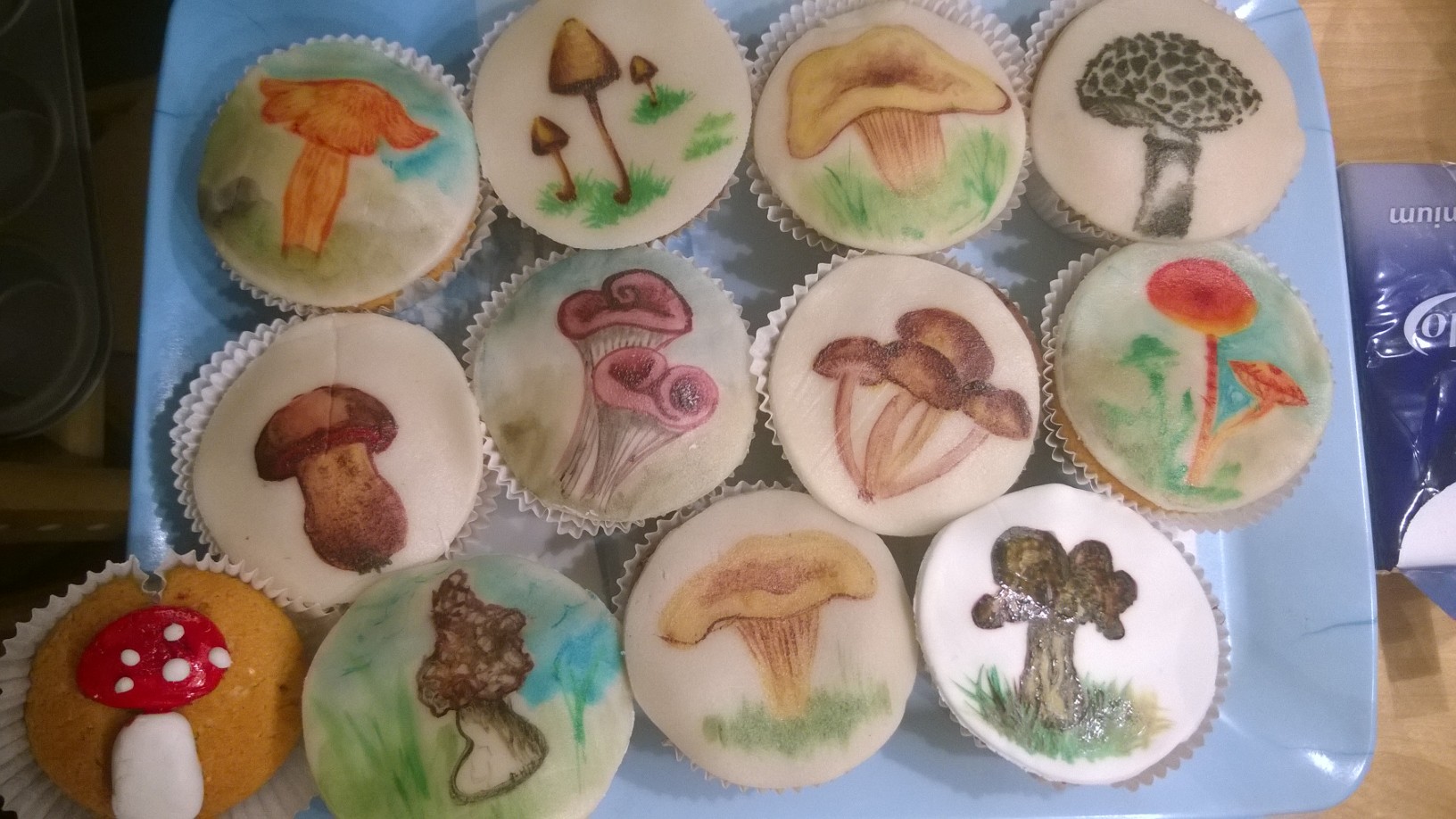 Sag bitte Deiner Frau, dass sie die Muffins wunderbar verziert hat. Vielleicht sollte sie mal Pilze malen, die nicht hinterher aufgegessen werden?!