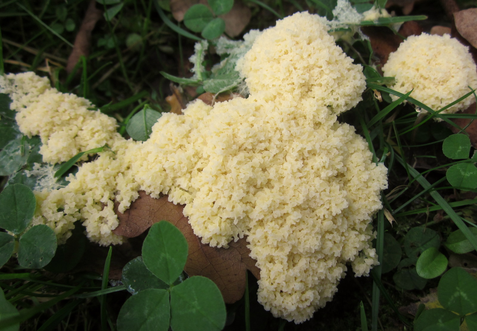 Ich hatte die Fuliga septica in Knallgelb in einer neu angelegten Biotonne, in die ich eine abgestorbene Kürbispflanze gelegt hatte, auf der hat sich dann dieser ganze Schleim ausgebreitet.