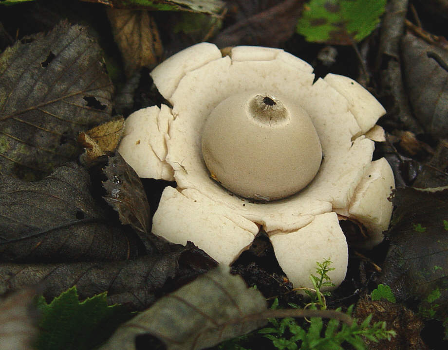 5) Und am Rande eines Spazierwegs im Gebüsch (dahinter eine Ahornreihe und ein paar Linden) zwischen einem kleinen See und einer Straße entdeckte ich so nebenbei etwas, was ich schon immer finden wollte, aber noch nie Glück damit hatte - endlich einen Erdstern, und davon gleich eine ganze Menge! Um welchen handelt es sich hier?