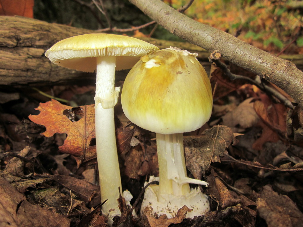 Bild 1:Heute habe ich ihn doch noch gefunden,den Grünen Knollenblätterpilz (Amanita phalloides).Standort ist eine Roteichenpflanzung.