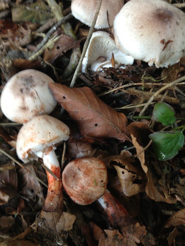 Trotz des starken Merkmals der sofortigen ziegelroten Rötung am ganzen Fruchtkörper konnte ich diese Schirmlinge noch nicht bestimmen. Ich möchte beinahe von milchend sprechen, hatte den ganzen Saft an den Händen.