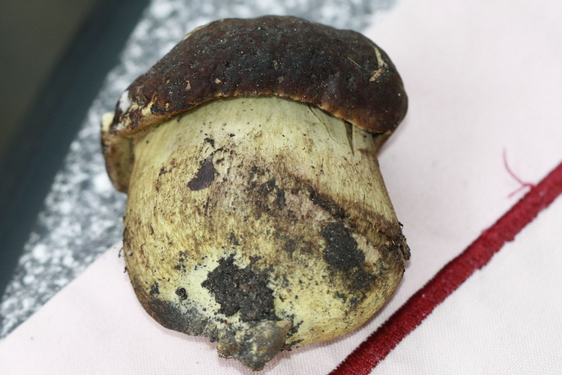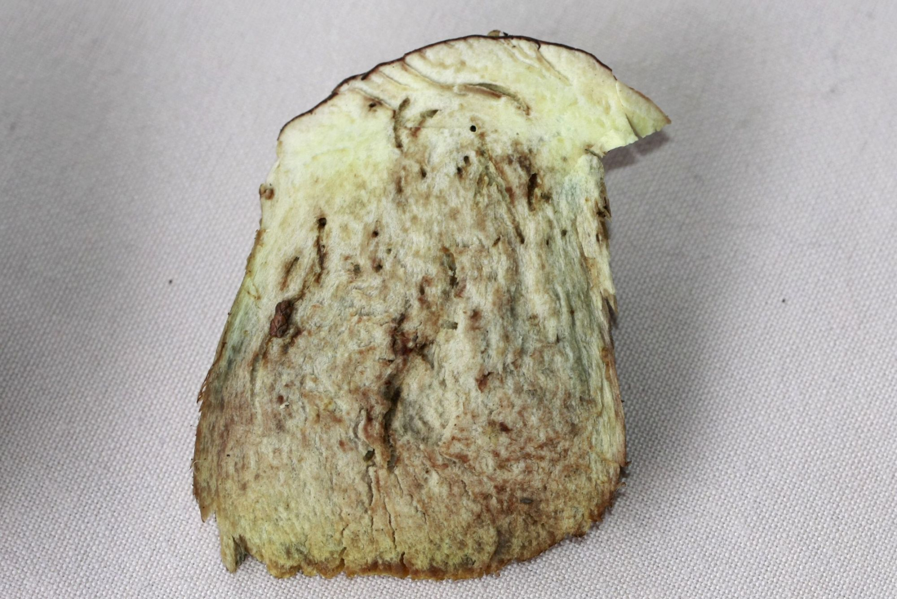 Bei Querschnitt des Pilz sieht dieser leider nicht mehr frisch aus, wer weiß, wie lange er schon gelegen hat. Vielleicht ist es auch möglich, dass bei "abgelagerten" Stücken die Farben des Fleisches bzw. Verfärbung anders aussehen als bei frischen Pilzen.