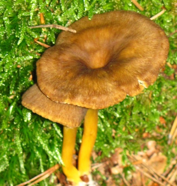 Sind das Trompeten-Pfifferlinge, auch der Pilz mit den recht dunklen und nicht ausgeprägt gelben Stiel?