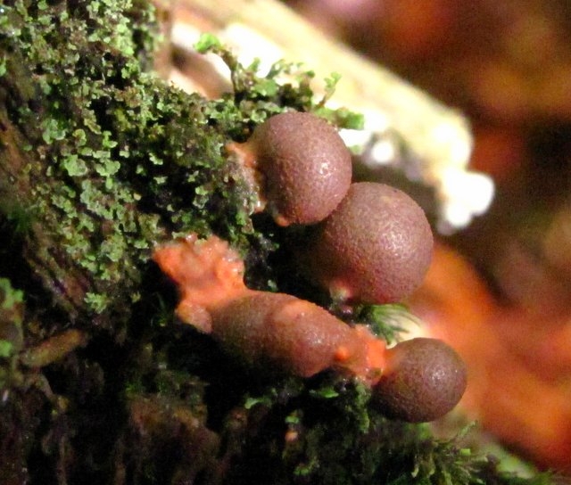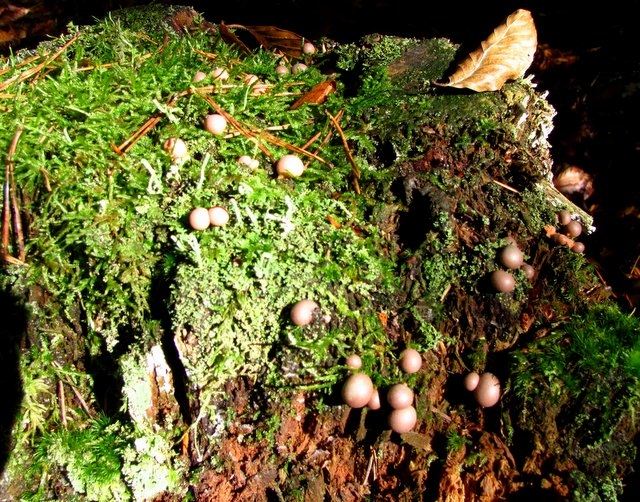 Und was sind den das für Mini-Bobbel im Moos auf einem Baumstumpf, die Farbe reicht von einem hellen rosa bis lila. Alle Pilze wuchsen in einem Mischwald aus Fichten, Kiefern und Buchen.
