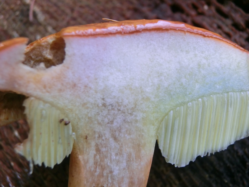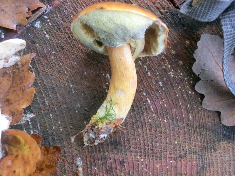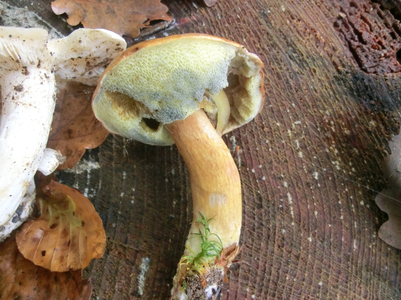3. In der Nähe der obigen gefunden. Stiel mit leichten Rottönen, blauend, die Poren sind ziemlich groß, Geruch ?