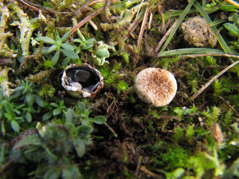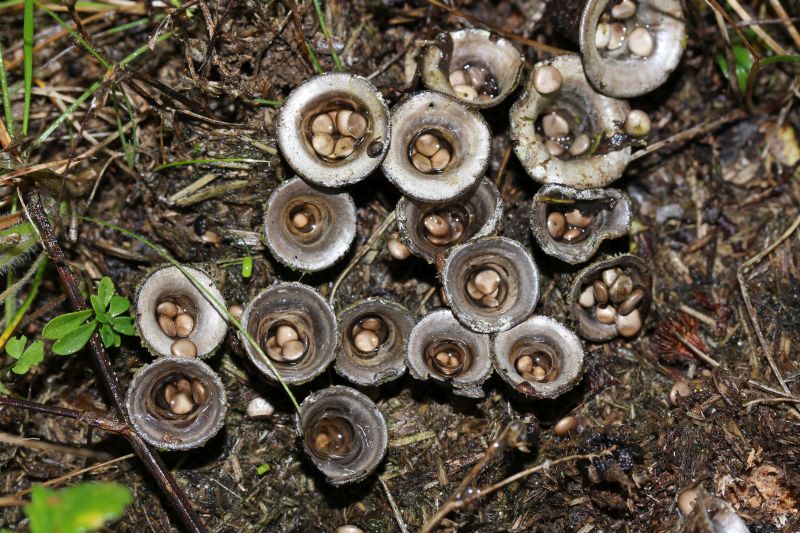 Einen Pilz auf Dung will ich euch natürlich auch zeigen, auch wenn es mit dem Bleigrauen Teuerling (Cyathus olla) einer ist, der lediglich fakultativ auf diesem Substrat wächst.