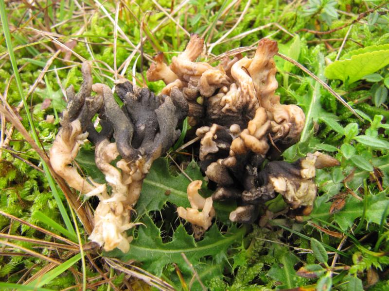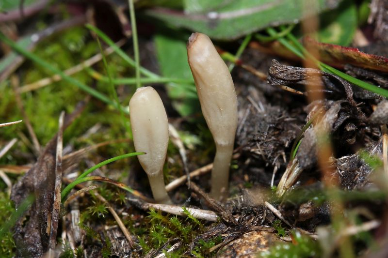 Die anschließende Nachmittagsexkursion führte in den Ostteil des "NSG Göttersitz" bei Naumburg auf sporadisch von Schafen beweidete Xerothermrasen. Auf diesen Orchideenwiesen konnte an mehreren Stellen die blaugrün gefärbte Nacktfüßige Stielzunge (Microglossum nudipes) entdeckt werden. Die Art ist neben Färbung und Standort auch durch die oft zuspitzenden Köpfchen charakterisiert.
