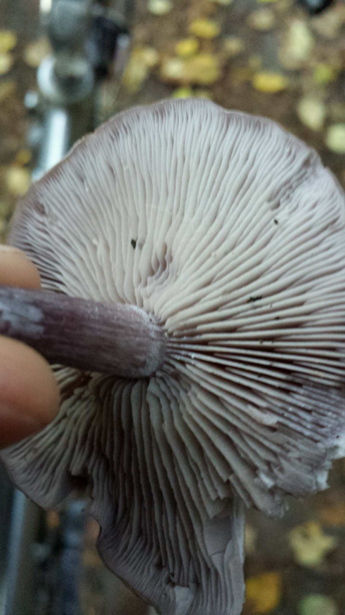 Der Pilz kam schon recht früh in die Schublade 'violetter Rötelritterling' und ich habe es versäumt nach weiteren Merkmalen zu schauen. Nur sehr grob meine ich mich zu erinnern dad die Lamellen nicht fest mit dem Hut verbunden waren.