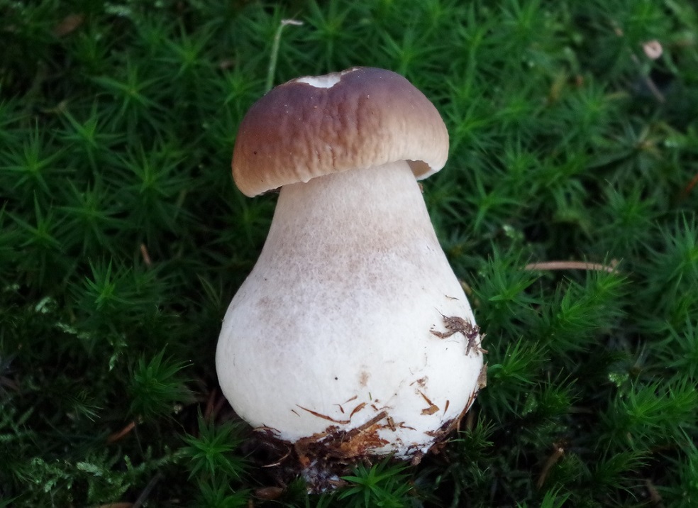 Gerade erst am ersten moosbewachsenen Hang angelangt, schauten mich auch schon die ersten braunen Mützchen an: