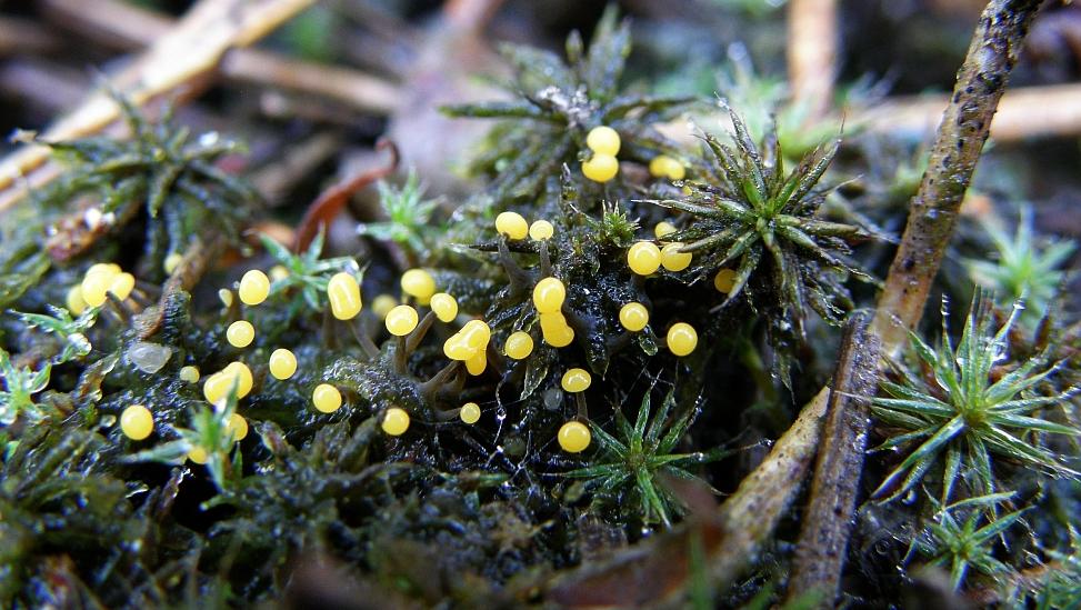 Also wenn das kein Schleimpilz ist, dann ist vielleicht Bryoglossum gracile nicht weit weg? Aber das wäre doch etwas eher weißstieliges...