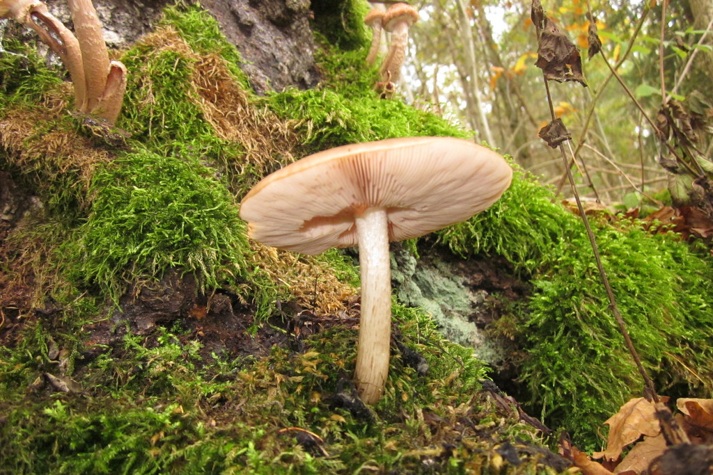 7. Rostfleckiger Helmling (Mycena zephirus) unter Fichte.