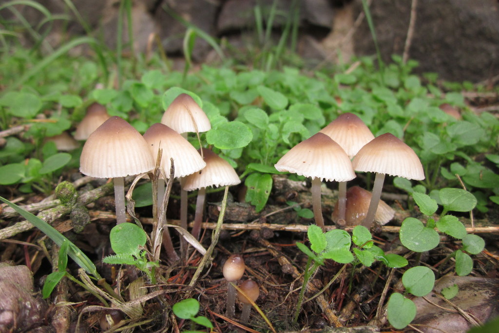 7. Rostfleckiger Helmling (Mycena zephirus) unter Fichte.