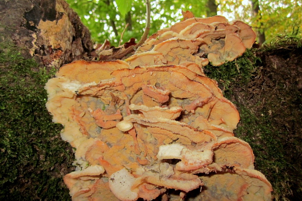 6. Gallertfleischiger Fältling (Phlebia tremellosa) ebenfalls von unten.