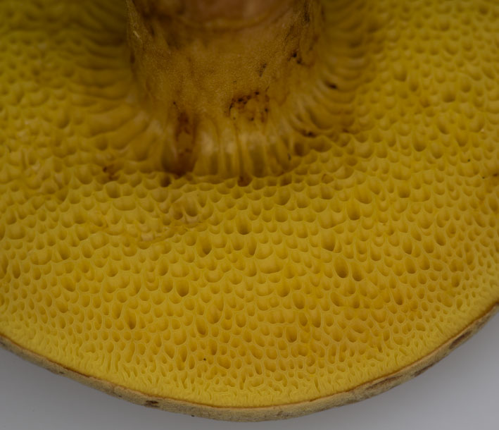 Soll X. ferrugineus nicht weißes Fleisch und ein Pseudo-Netz auf der Stielrinde haben? Dieses hier ist eindeutig gelb und das Pseudo-Netz fehlt, was dann für X. subtomentosus spricht.