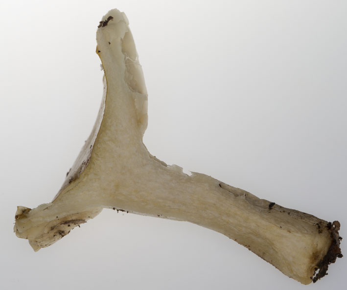 Er war etwa 6-7 cm hoch bei einem Hutdurchmesser von ca. 4 cm. Weißes Sporenpulver.