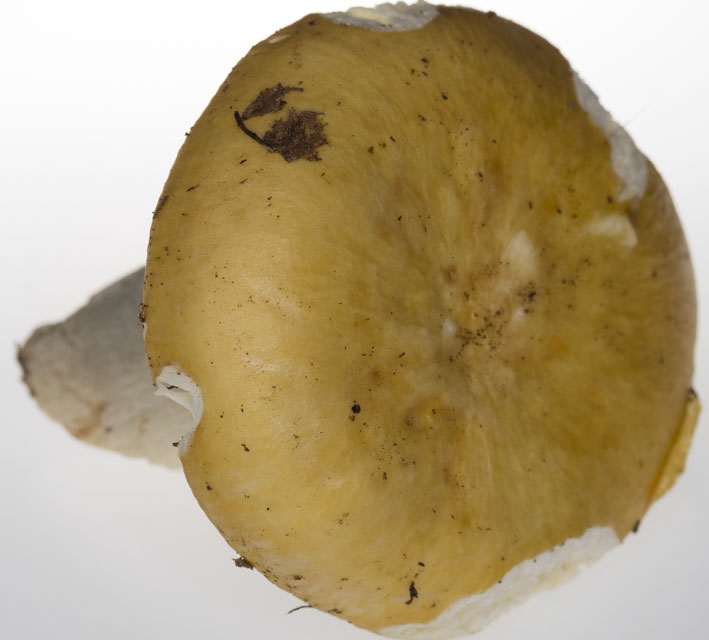 Auf jeden Fall Täubling. Weißes Sporenpulver spricht für den stellenweise sehr häufigen Ockertäubling. auch wenn ich den meist stärker ockerfarben und weniger gelb kenne. Den Gelben Graustieltäubling schließe ich wegen der Farbe des Sporenpulvers und den fehlenden Birken am Standort eher aus.