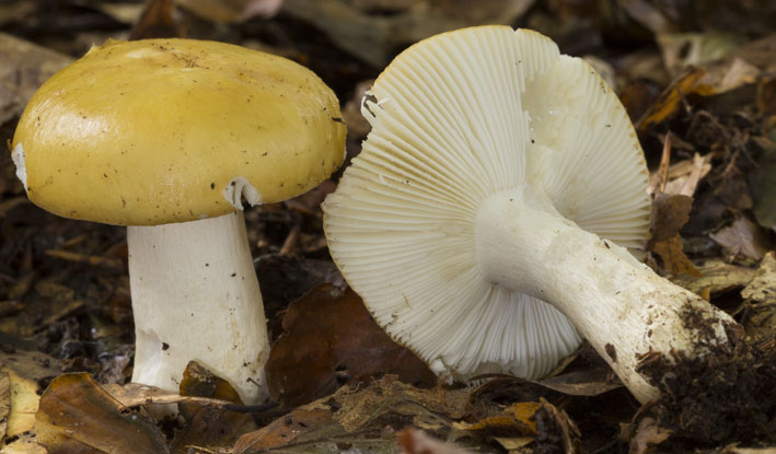 Auf jeden Fall Täubling. Weißes Sporenpulver spricht für den stellenweise sehr häufigen Ockertäubling. auch wenn ich den meist stärker ockerfarben und weniger gelb kenne. Den Gelben Graustieltäubling schließe ich wegen der Farbe des Sporenpulvers und den fehlenden Birken am Standort eher aus.