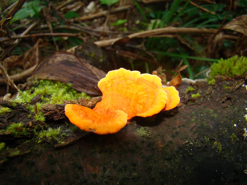 sodass dort lebhafte Kommentare einsetzten, da dies eigentlich völlig unpassend für genannte Art ist. Der alternativ nur von der Färbung her ins Spiel gebrachten Schwefelporling ist es wohl aber definitiv auch nicht. Und gelbe Farbspiele der rechts befindlichen Schmetterlings-Tramete wohl auch nicht. - Kennt jemand von der Zinnober-Tramete solche intensive orangegelbe Färbung? Könnten das evtl. sehr junge Ex. sein, sodass diese sich erst später röten? Oder gibt es evtl. andere Ursachen für diese Färbung? Oder gibt es evtl. eine andere Art, die sich hier dazwischen gemischt hat? Biotop ist ein naturnaher bachbegleitender Mischwald in der Südpfalz, vom 03.10.2014. Andere Notizen oder auch Schnitte u.ä. habe ich leider als unbedarfter Laie mit dieser Gruiippe nicht gemacht.