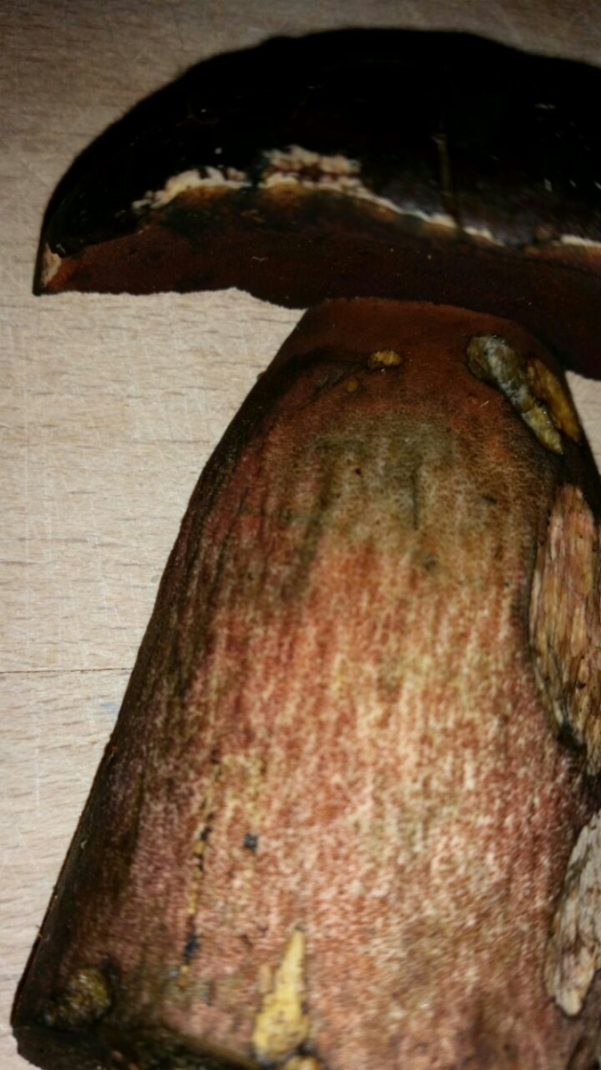 Jedoch färben Flockis nach meiner Erfahrung eher noch stärker .Ein wirklich sicheres Unterscheidungsmerkmal bzgl. netzstielieligen und flockenstieligen ist der Röhrenboden. Bei den netzstieligen sieht man eigentlich so gut wie immer im Anschnitt die rötliche Linie im Anschnitt. Wenn ich mir da unsicher bin, entferne ich die Röhren und sehe dann bei den Netzstieligen zumindest eine rötliche Verfärbung.