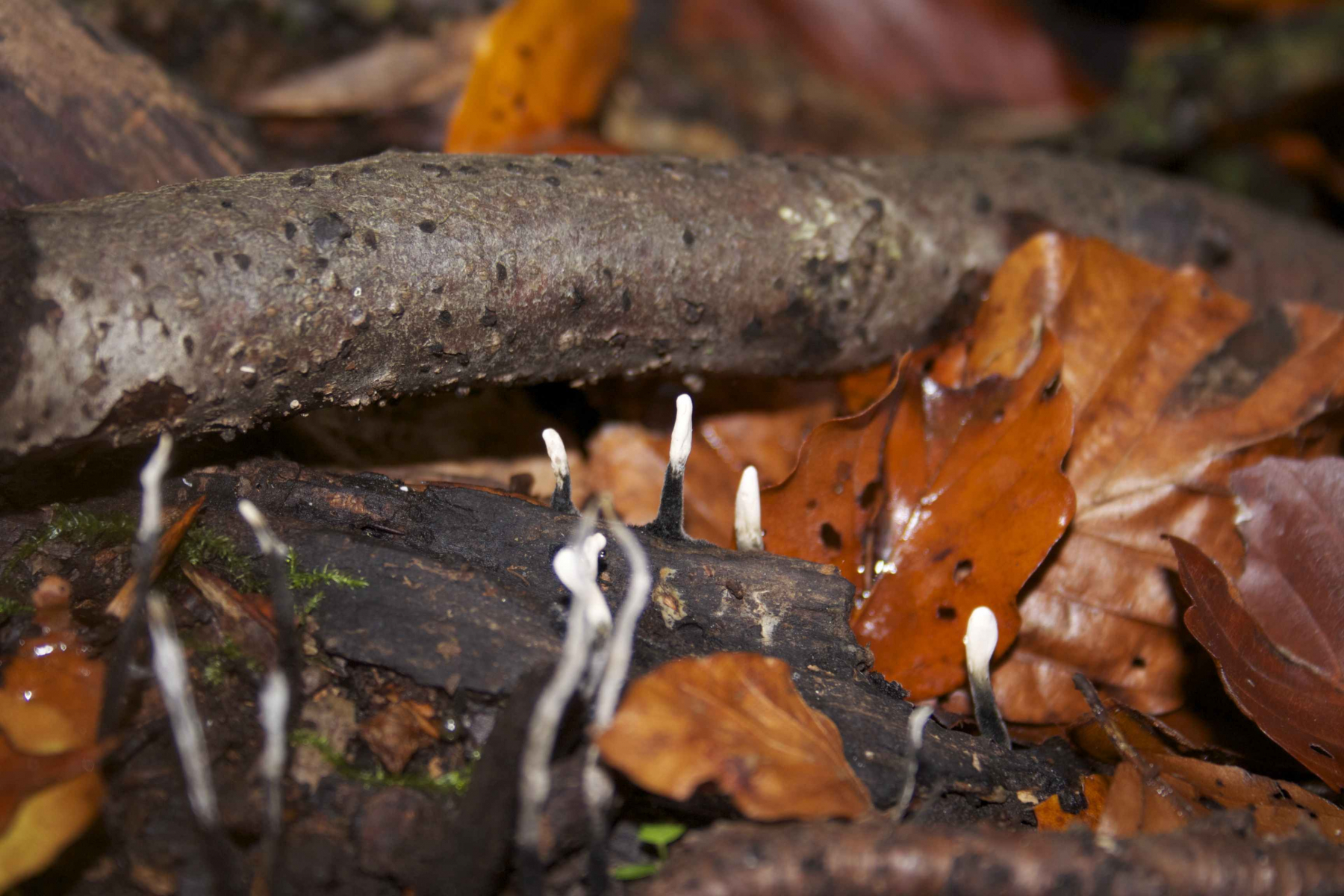 28: Das sind mehrere Arten. Da sind Kohlenbeeren (Hypoxylon sp), mit parasitärem Befall an den Perithecienmündungen (die weißen Punkte), und dabei etwas, das sich nciht bestimmen lässt, aber wo wahrscheinlich Plicaturopsis crispa rauskommen wird. ;)