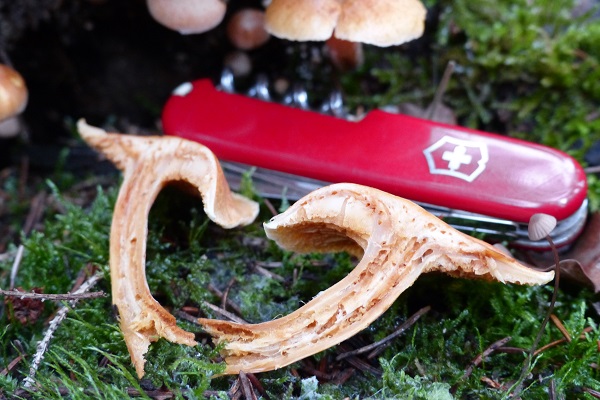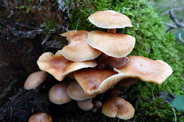 Gefunden an Totholz, Nadelwald. Lamellen gelblich-cremeweiss, dicht gedrängt, an den Hut anwachsend. Büschelig, verschiedene Stadien. Geruch eher unbedeutend.....sagt mir meine Nase. Hut gelblich und etwa 4-5 cm Durchmesser, weißlicher Rand, im Alter leicht gewellt. Stiel faserig, gelblich-cremeweiß. Stielbasis konnte ich nicht sauber herausbekommen, da sofort gebrochen.