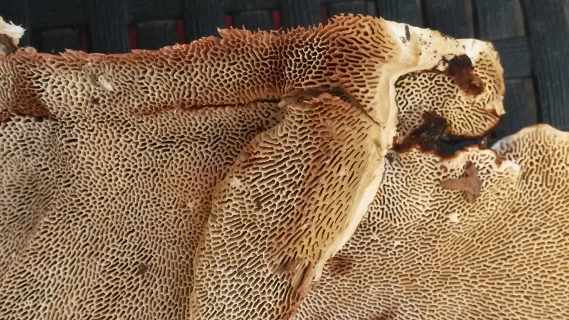 Die Fotos sind von oben, unten und von vorne. Der Pilz roch nicht unangenehm, die Poren wurden auf Druck leicht braun.