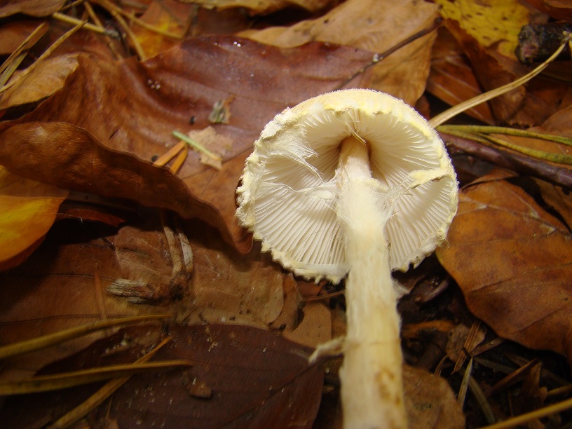 Der Pilz war ziemlich klein, max. 5 - 6 cm hoch und villeicht im Hut 2 cm im Durchmesser. Wuchsort wieder Südpfalz, 25. Oktober, artenreicher Mischwald am Otterbach. Auffällig neben dem schuppigen Hut fmich vor allem die spinnwebartigen Velumreste zwischen Hut und Stiel und am Stiel.