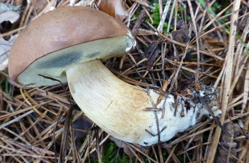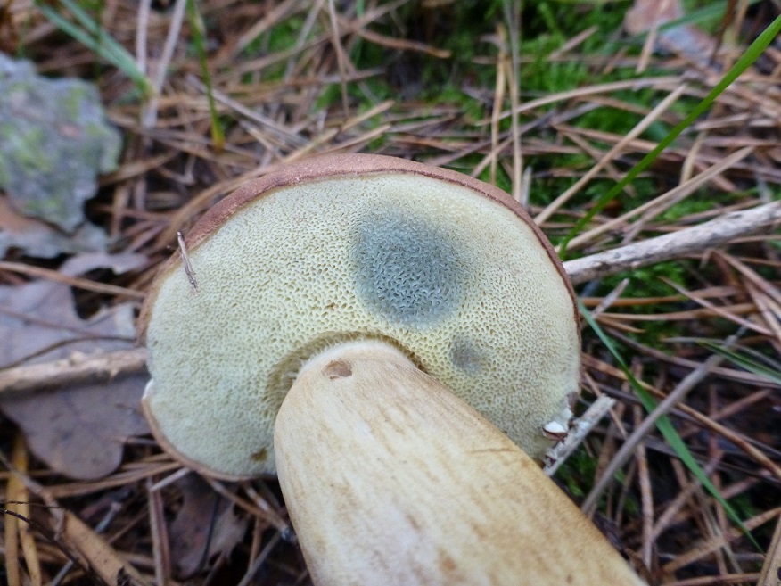 Insgeheim freute ich mich schon über meinen ersten Kiefern-Steinpilz, aber dann - die Poren bläuten. Und überhaupt sahen sie anders aus, als ich sie von Steinpilz oder Marone kannte. Irgendwie anders, so oval und etwas wellig.