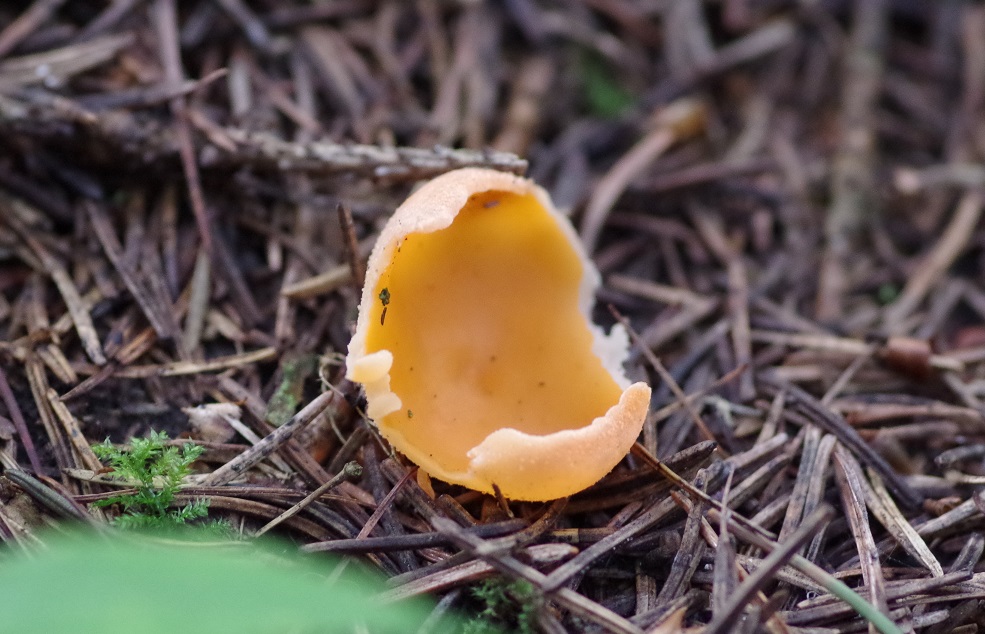 Bei der Größe und dem Standort (Fichtennadelstreu) wäre ich mir aber gar nicht sicher mit Orangebecherling.