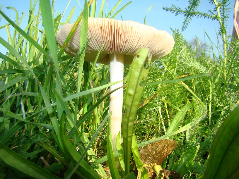 Fundort: alte Streuobstwiese in der Südpfalz (Büchelberg), von heute (01.11.). Der Pilz war mittelgroß, Hut ca. 6 cm, Stiel ca. 12 cm. Der Farbton der Lamellen geht leicht ins rosa, evtl. bei älteren Ex. (nicht untersucht, Familienspziergang!) bis ins braun (aber nicht sicher, ob gleiche Art).
