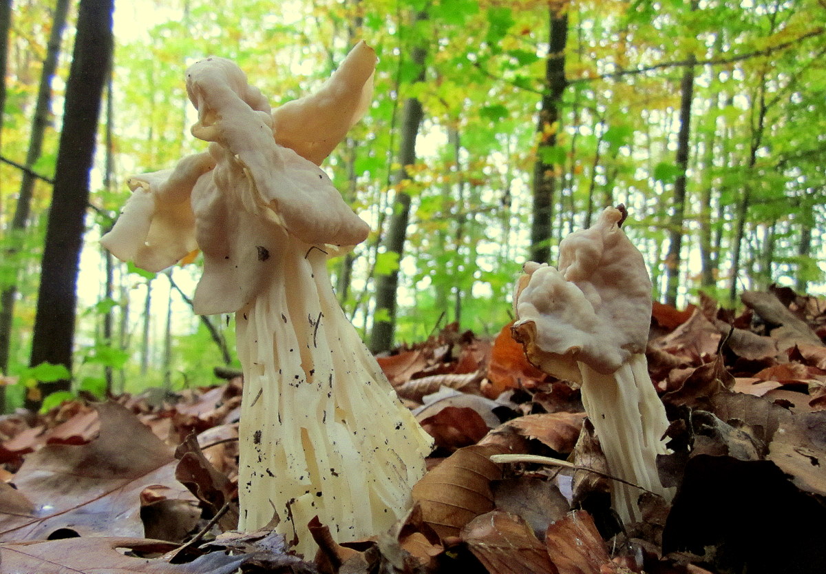 3. Mit fast 20 cm Höhe hat die Herbstlorchel (Helvella crispa) eine beachtliche Größe erreicht.