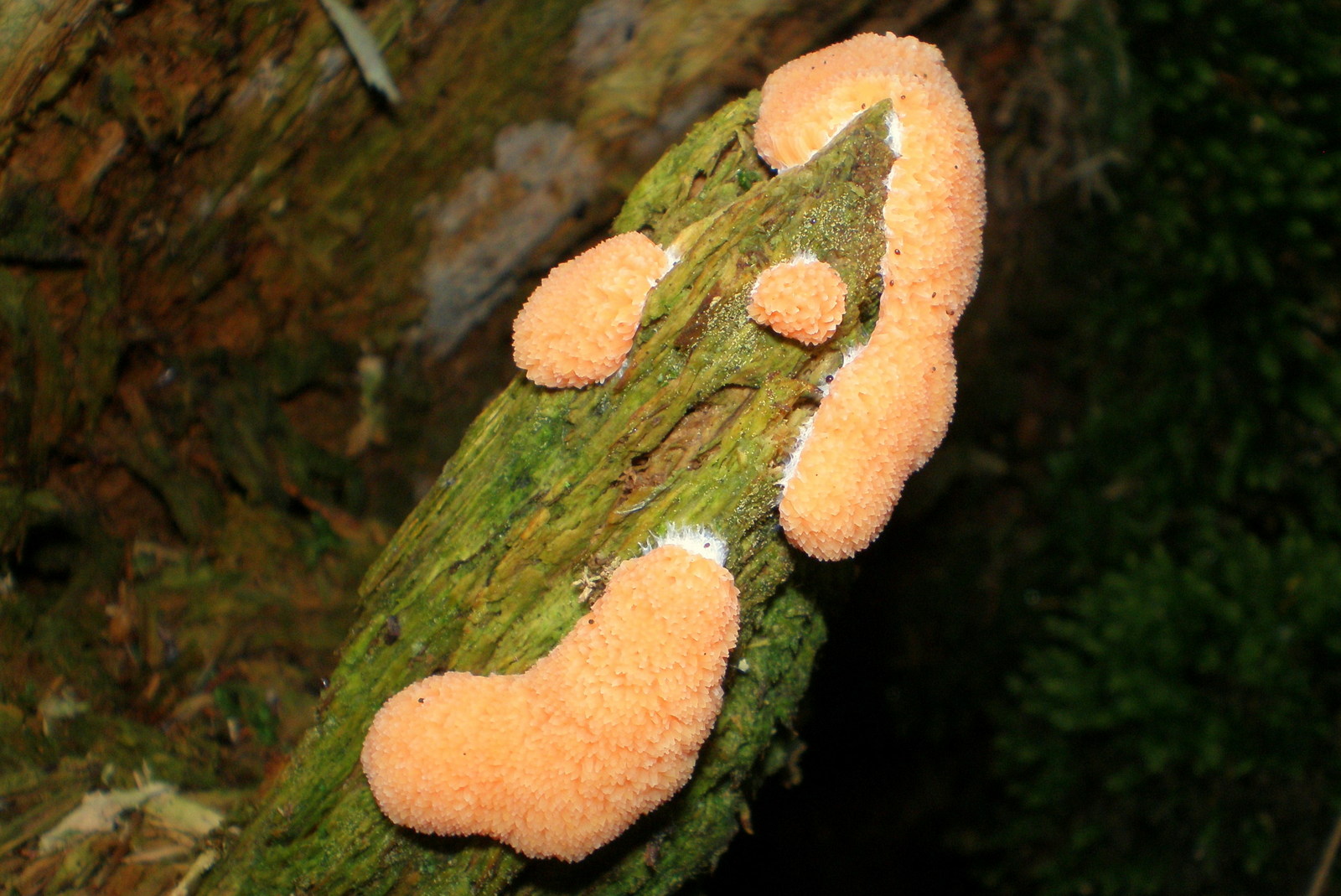 10. Ich nehme mal an, hier handelt es sich um den Lachsfarbenen Schleimpilz (Tubifera ferruginosa).