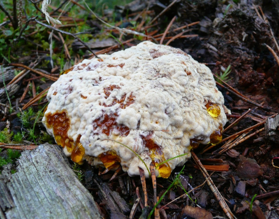 Das ist irgendwas mit (Gold?)schimmelbefall, davon auch die Tropfen., darunter kann ein röhrling stecken aber auch ein Täubling oder sowas- würde ich zumindest nun nach dem Bild urteilen falls er einen Stiel hatte.