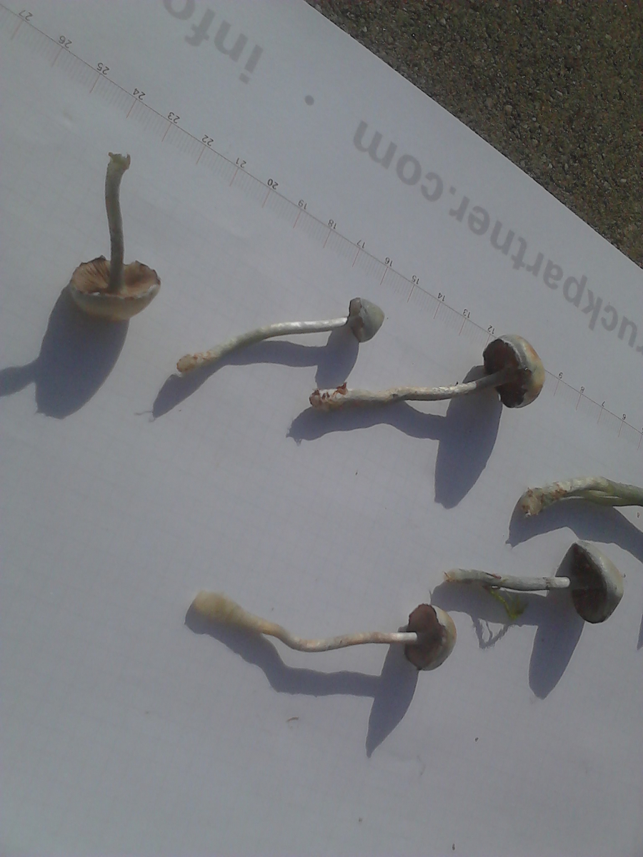 • Trotzdem fände ich es sehr interessant, wenn diese Pilze noch ein bisschen in der Diskussion bleiben könnten und wenn es noch ein paar bessere Fotos geben könnte (evtl. mit einer richtigen Kamera und nicht bloß mit dem Handy). Ich denke, das ist nichts ganz Triviales. Übrigens sind die Stiele nicht alle nackt, auf einigen ist deutlich eine dunkle Ringzone zu sehen.