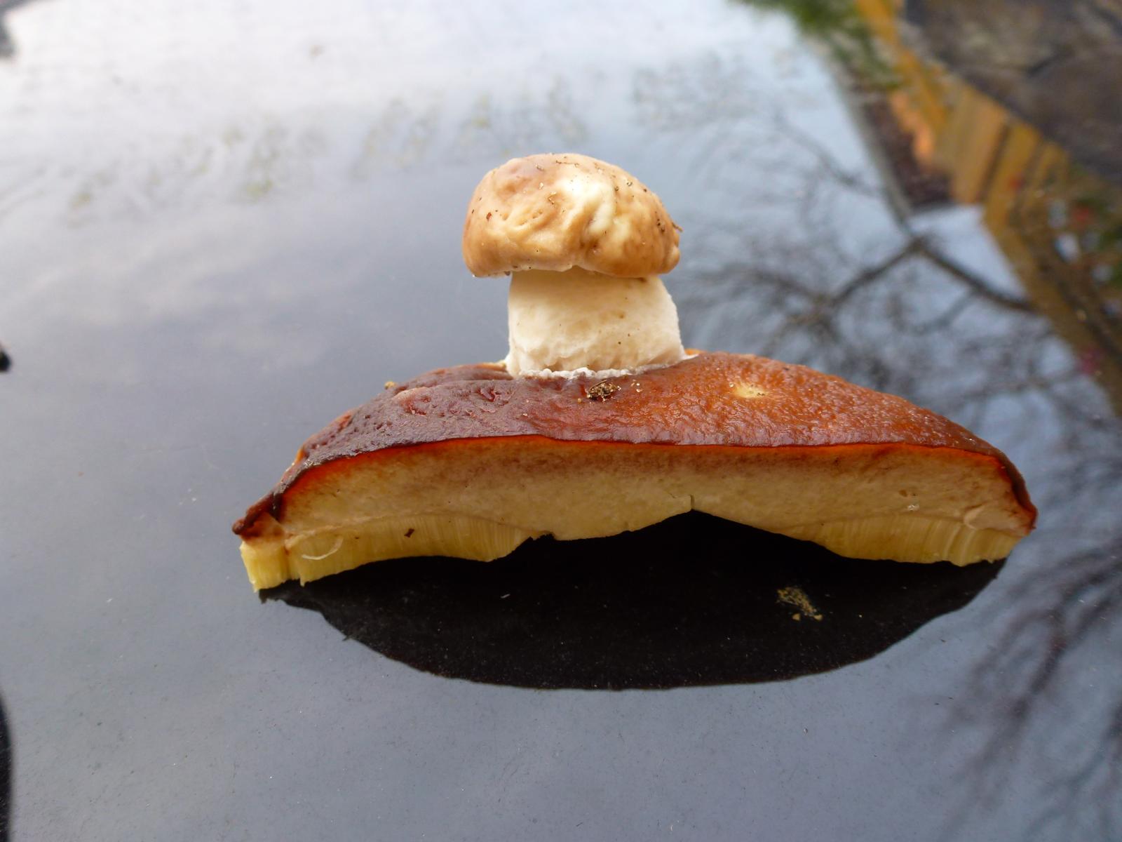 Hallo, habe heute diesen Steini gefunden, der noch einen kleinen Huckepack trägt. Leider nur noch fragmentarisch fotografiert, da er doch schon sehr zerfleddert war... Und dann einen Parasol....das nenn ich mal wirklich einen Riesen-Schirmpilz!