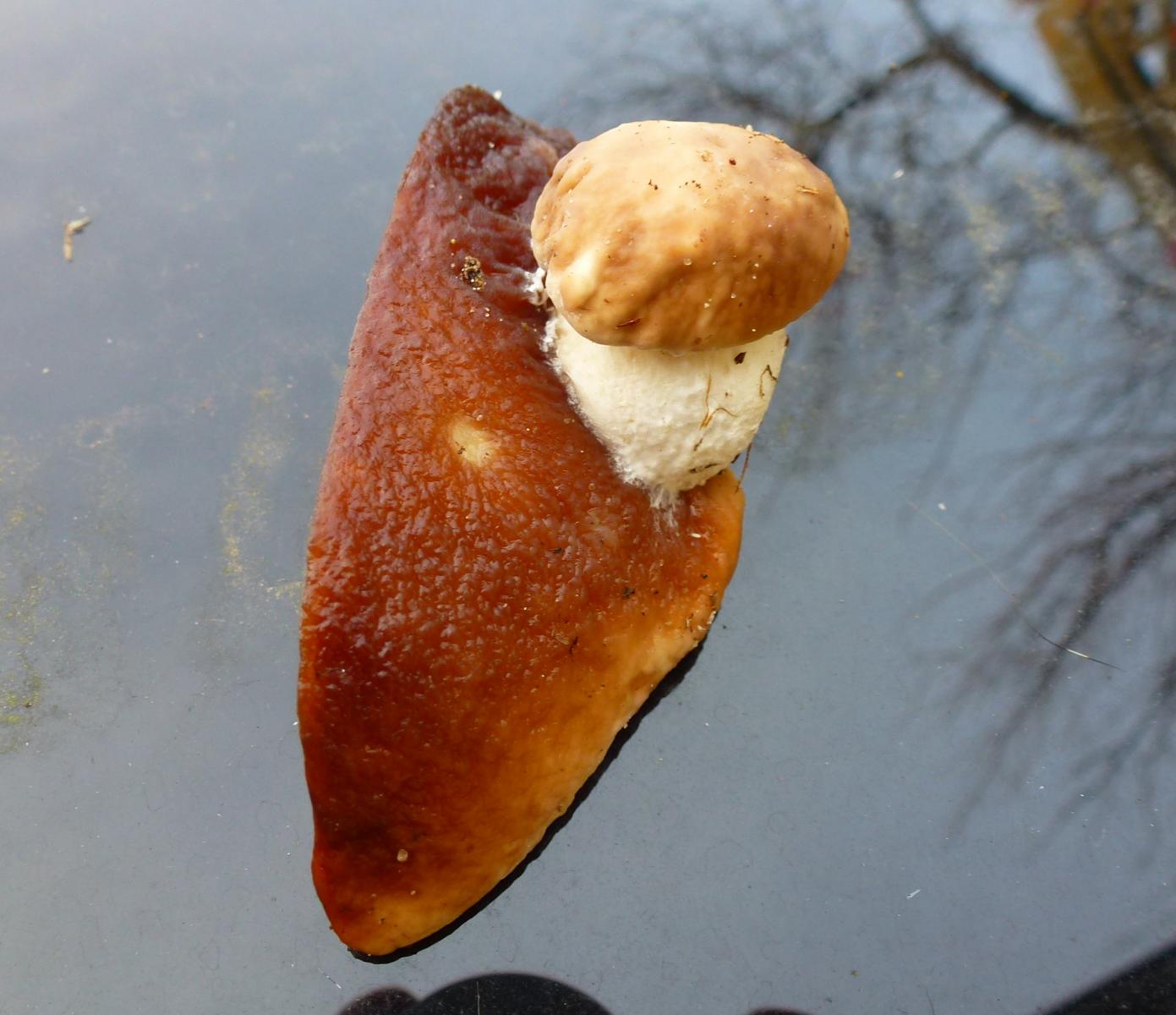 Hallo, habe heute diesen Steini gefunden, der noch einen kleinen Huckepack trägt. Leider nur noch fragmentarisch fotografiert, da er doch schon sehr zerfleddert war... Und dann einen Parasol....das nenn ich mal wirklich einen Riesen-Schirmpilz!