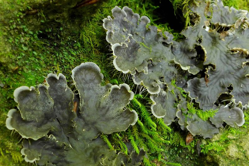 Peltigera praetextata, Schuppen-Hundsflechte auf Steinbrocken (nur "Halb-Pilz), in großen Mengen
