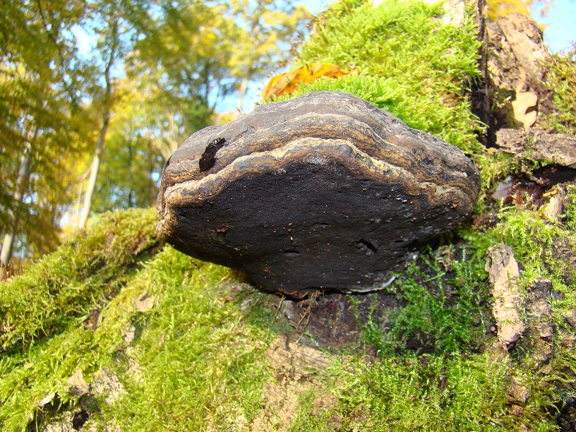 Edit: wobei diese braunen dünnen Linien auch Phellinus (Feuerschwamm) kann, dennoch sehe ich den Zunderschwamm.