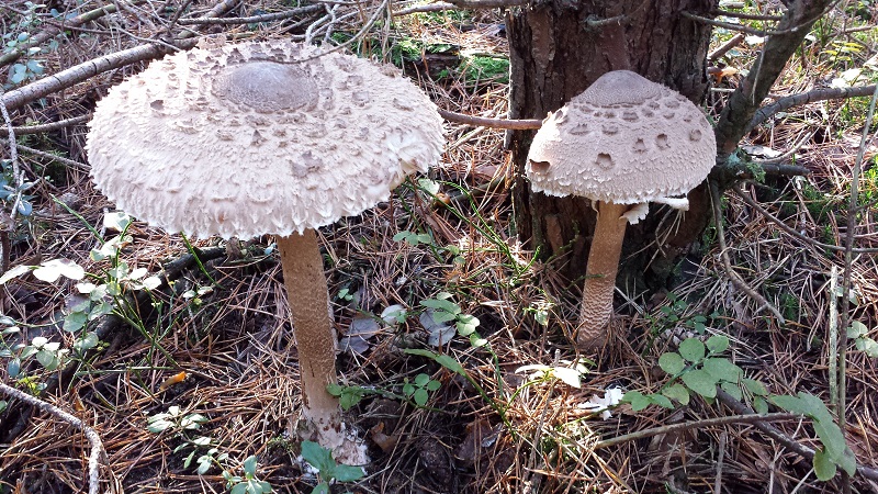 Jetzt stehen im Wald einige große Pilze, wo ich von Parasolen ausgehe.