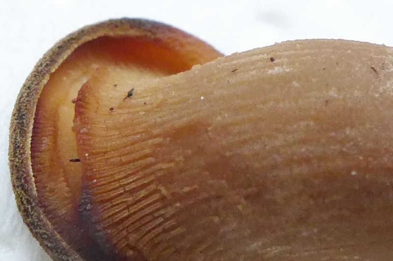 2. eine von der Huthaut zu trennende gelatinöse Schicht konnte ich nicht sehen, aber die ganze Huthaut war vom Restfruchtkörper abziehbar und zog sich dabei in die Länge wie ein Gummiband - also war da "etwas Gelatinöses"