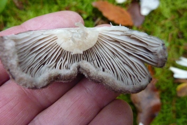 • Ein bisschen was Makroskopisches muss bei Erdritterlingen schon gehen, denn mikroskopisch geht fast nichts, und irgendwie muss man die Arten ja auseinanderhalten können. Bei Erdritterlingen kommt es makroskopisch auf den Geruch an (im Angebot sind: geruchsneutral, mehlig-ranzig und "pfefferig" , leider nicht aschig-lederartig ;)), ferner auf das Vorhandensein einer Cortina im Jungzustand und in erster Linie auf die Huthautstruktur (im Angebot: wollig-filzig, homogen-feinfilzig, feinschuppig mit filzigen Flecken, grobschuppig, sparrig-schuppig). Sehr wichtig soll auch der Fundort sein; im Kiefernwald ist Tricholoma terreum der erste "Platzhirsch".