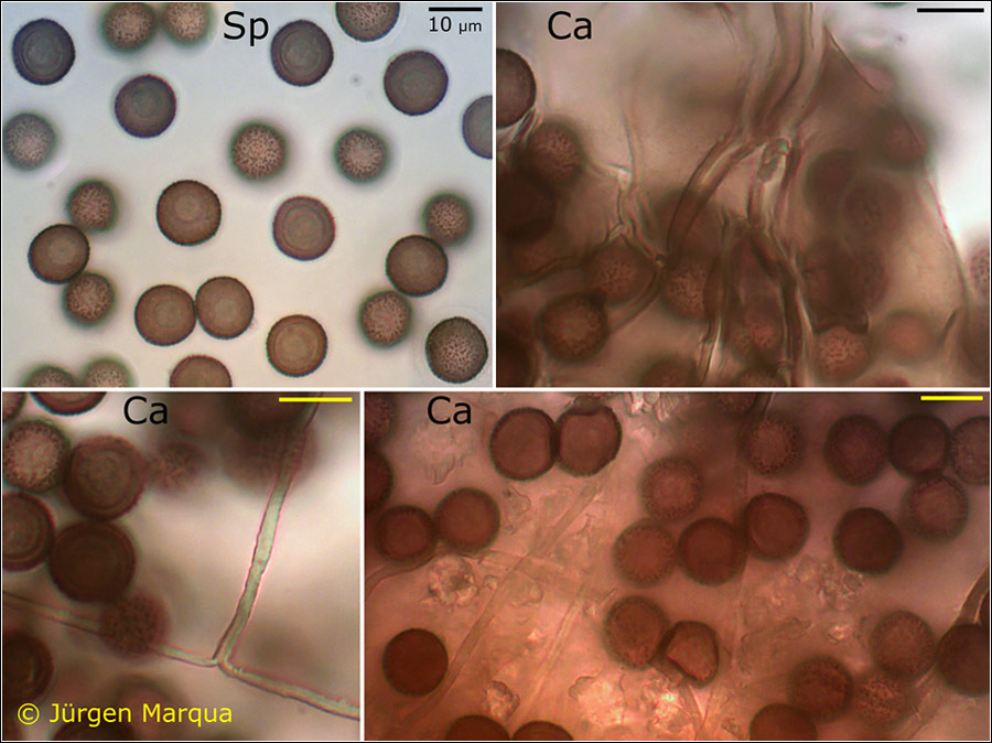 Leider scheinen mir Deine Fruchtkörper etwas gestört, einige sehen etwas deformiert aus, auch die Sporengröße ist sehr weit gefächert, das spricht auch für Störung.