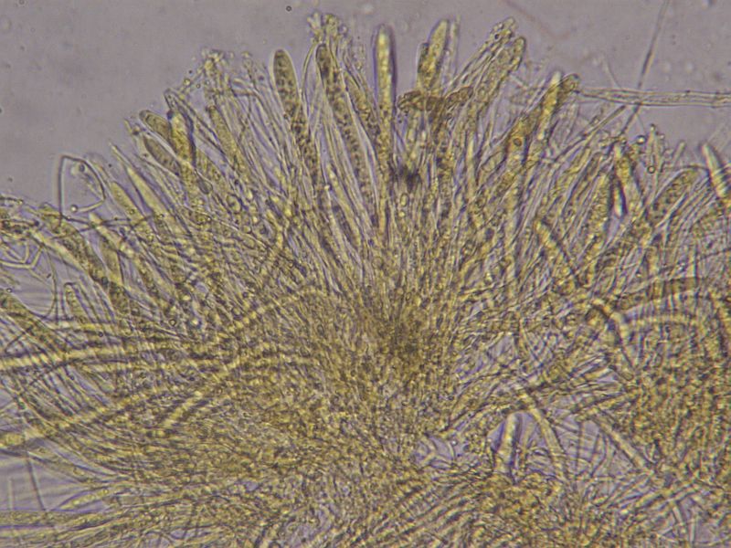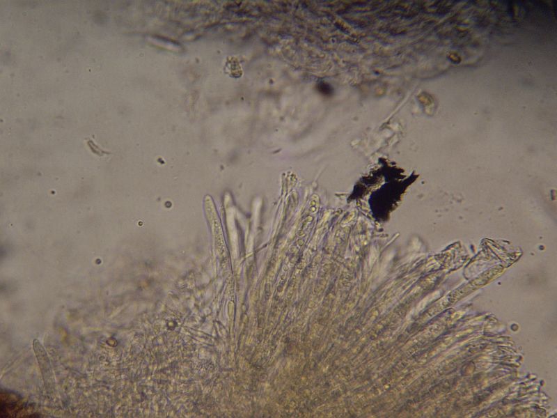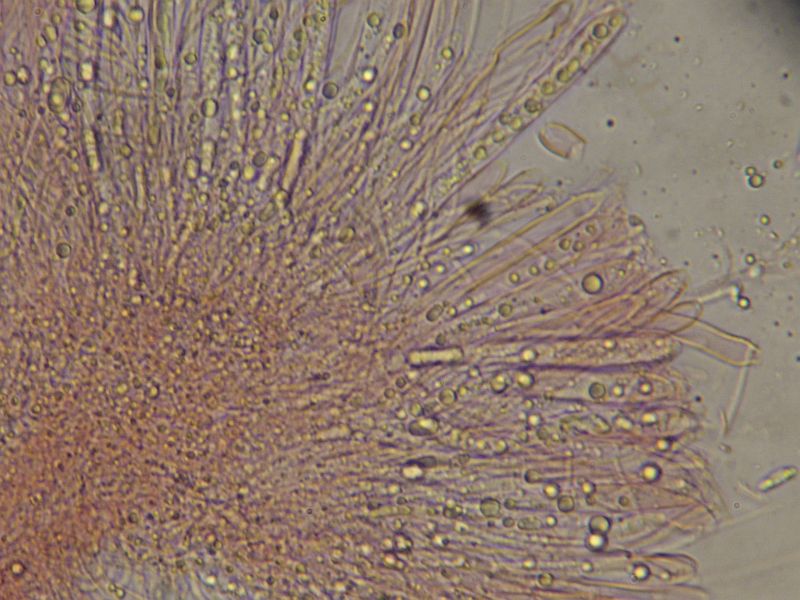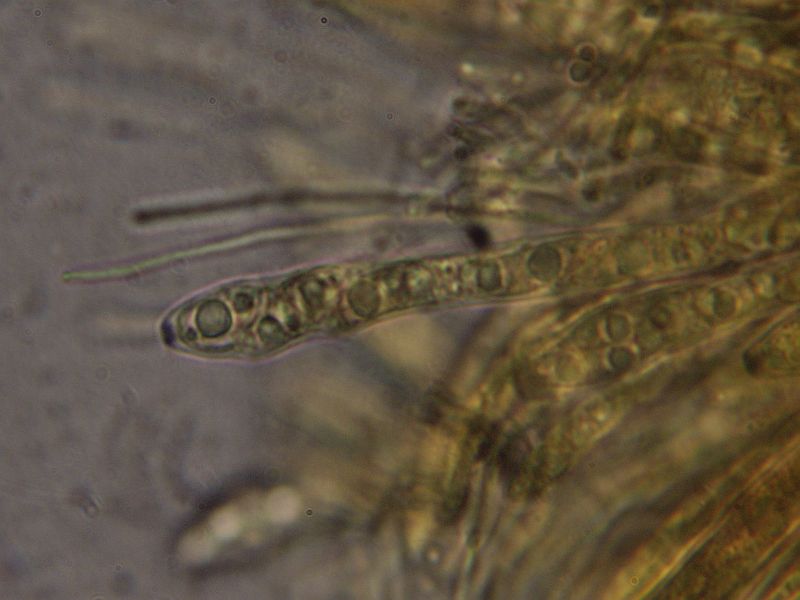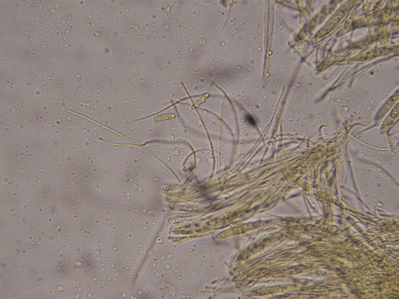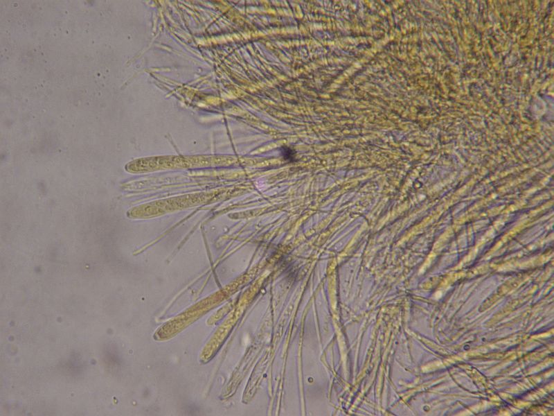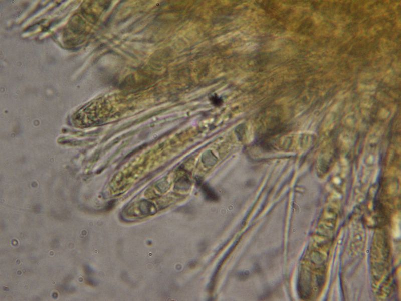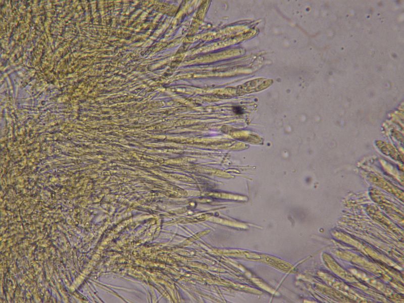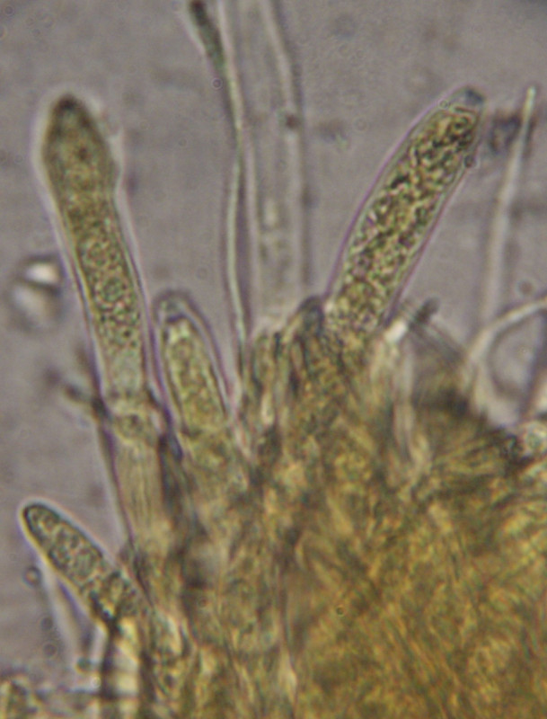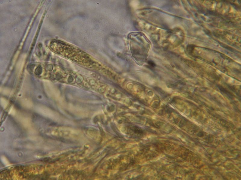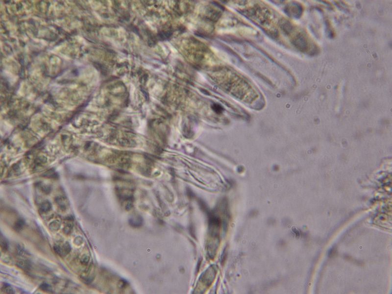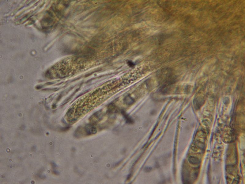 Also es hat sich mit Lugol nur alles gelbraun-ockerlich verfärbt. Es gab vereinzelt fädige Strukturen, die ich aufgrund von Unkenntnis als Paraphysen bezeichne, die keulig verdickt waren. Ich weiß, dass das für B. citrina spricht. Allerdings haben bei weitem nicht "Paraphysen?" diese keulige Verdickung am Ende.